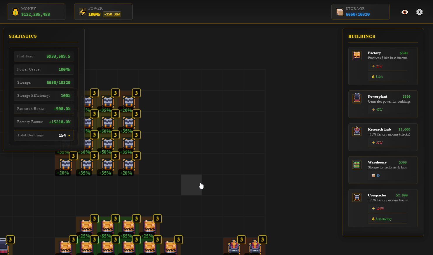 A minimalist factory-building idle game where efficiency meets strategy. Design, expand, and optimize your industrial empire on a dynamic grid system.